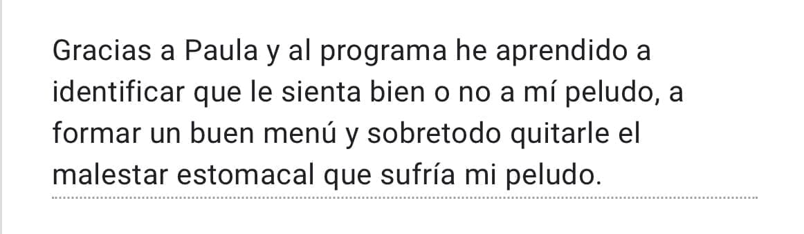Testimonios de personas que han cambiado la dieta de su perro con patología conmigo.